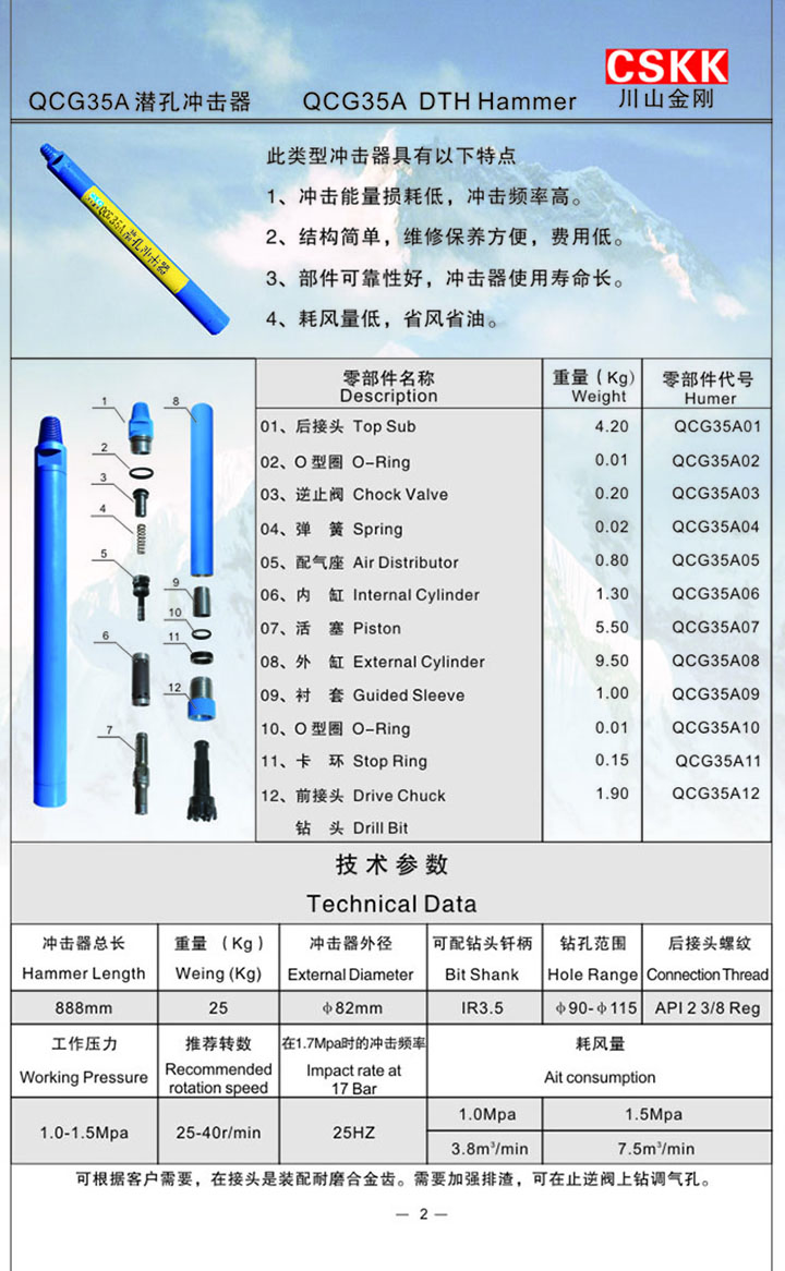 35A沖擊器此類型沖擊器具有以下特點:1,沖擊能量損耗低,沖擊頻率高。2,結(jié)構(gòu)簡單,維修保養(yǎng)方便,費用低。3,部件可靠性好,沖擊器使用壽命長。4,耗風(fēng)量低,省風(fēng)省油。