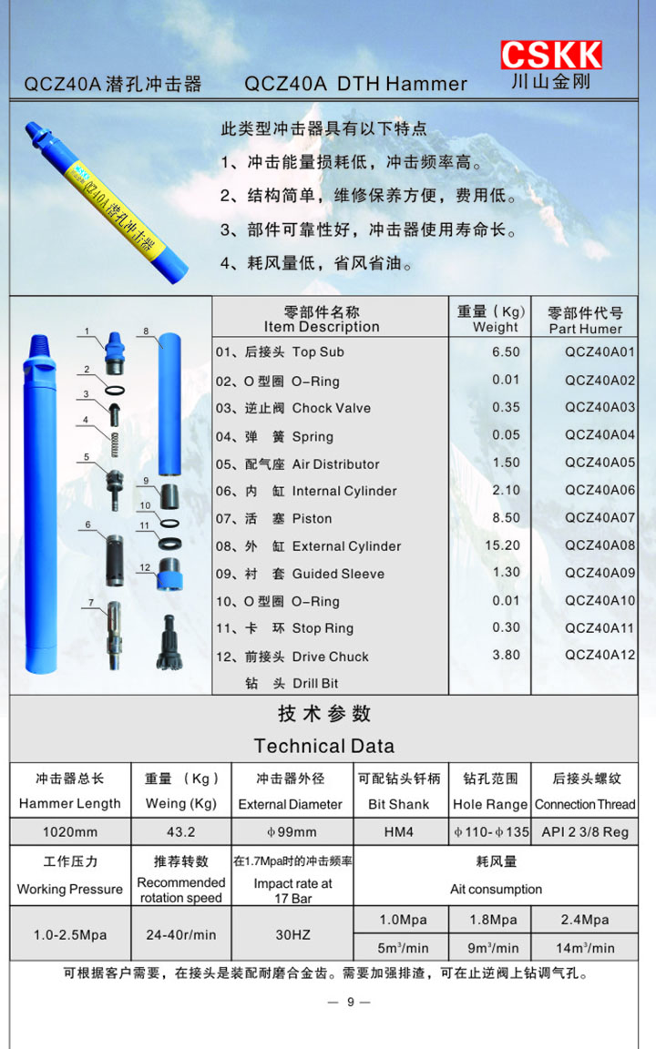 40A沖擊器此類型沖擊器具有以下特點:1,沖擊能量損耗低,沖擊頻率高。2,結(jié)構(gòu)簡單,維修保養(yǎng)方便,費用低。3,部件可靠性好,沖擊器使用壽命長。4,耗風(fēng)量低,省風(fēng)省油。